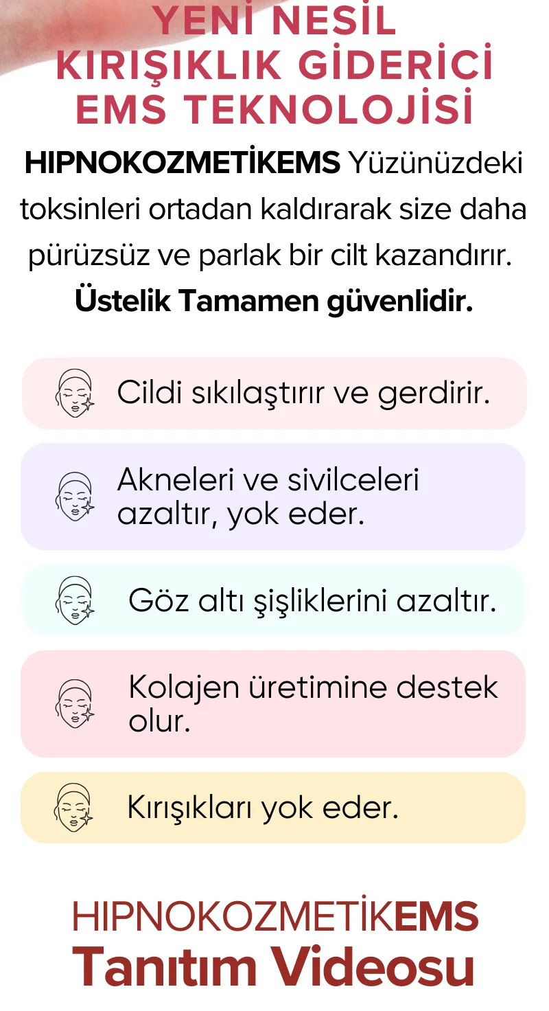 A*** Y*** | 29 Mayıs 2024 |bu cihaz sayesinde gençleştim resmen diyebilirim yüzümde sarkmalar vardı kırışıklıklarımın azalmasına yardımcı oldu çok teşekkür ederim kendımı daha genç hissediyorum
