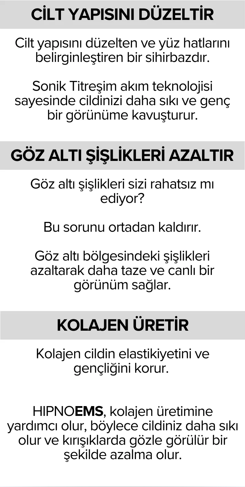2- Cildin Sıkılaşmasına Yardımcı Olur: Sonik titreşim akımı, ciltteki kasların uyarılmasına yardımcı olabilir. Bu da cildin sıkılaşmasına ve daha gergin bir görünüm kazanmasına yardımcı olabilir.